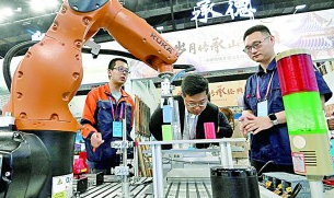 在河北邯鄲舉行的河北省第二屆職業技能大賽上,參觀者在展演區參觀。新華社發