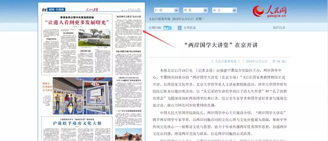 人民日報海外版第4版(要聞·臺港澳)刊登兩岸國學大講堂報道↑↑↑