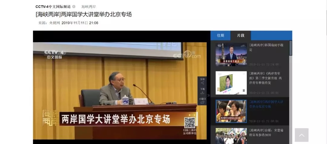 cctv4中文國際頻道播出兩岸國學大講堂北京專場視頻