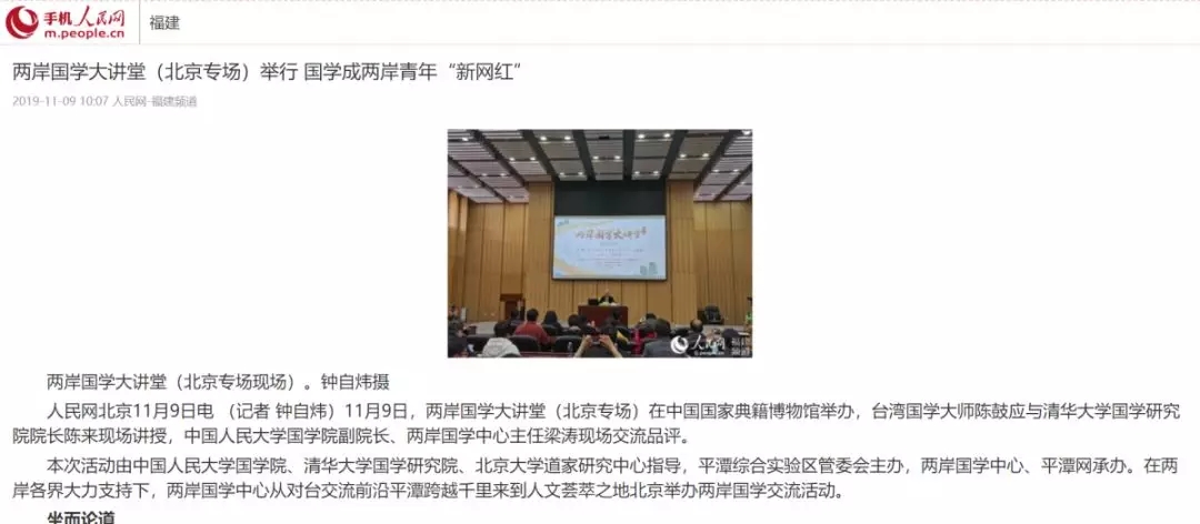 還有多家媒體以《兩岸國學大講堂走進國家典籍博物館》、《兩岸國學大講堂北京專場》等為題進行了集中關注報道。