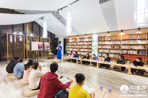活動現(xiàn)場,有一位從北京來嵐出差的聽眾,他告訴我們此次在嵐出差期間,經(jīng)常到兩岸國學書吧看書,在工作人員的告知下,得知有讀書分享會后特意前來參加。“我自己是個理工男,平時會看關于國學的書,在平潭第一次來到書吧時,給我的感覺很舒服,許博士的分享會,大家以書會友,共同領略國學文化和魅力,是一場視覺和聽覺上的精神盛宴。”他感慨道。