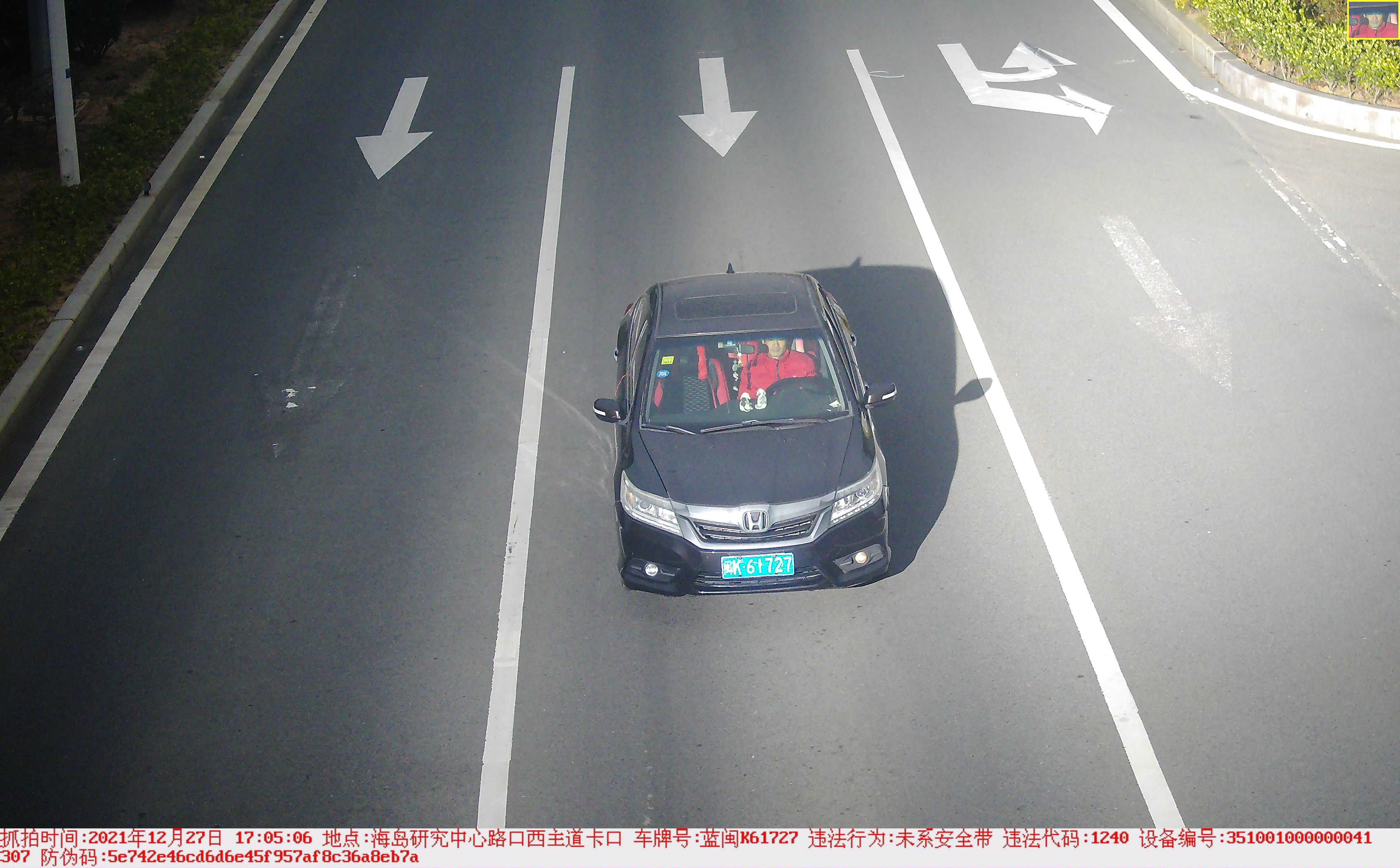 2021年12月27日17時05分06秒 海島研究中心路口西主道卡口 閩K61727 未系安全帶
