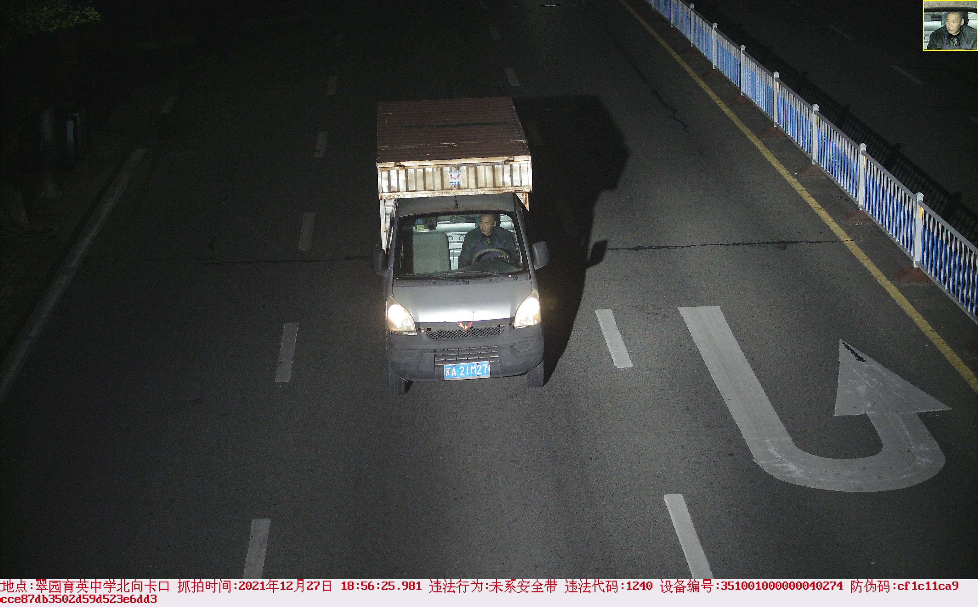2021年12月27日18時56分25秒 翠園育英中學北向卡口 閩A21M27 未系安全帶