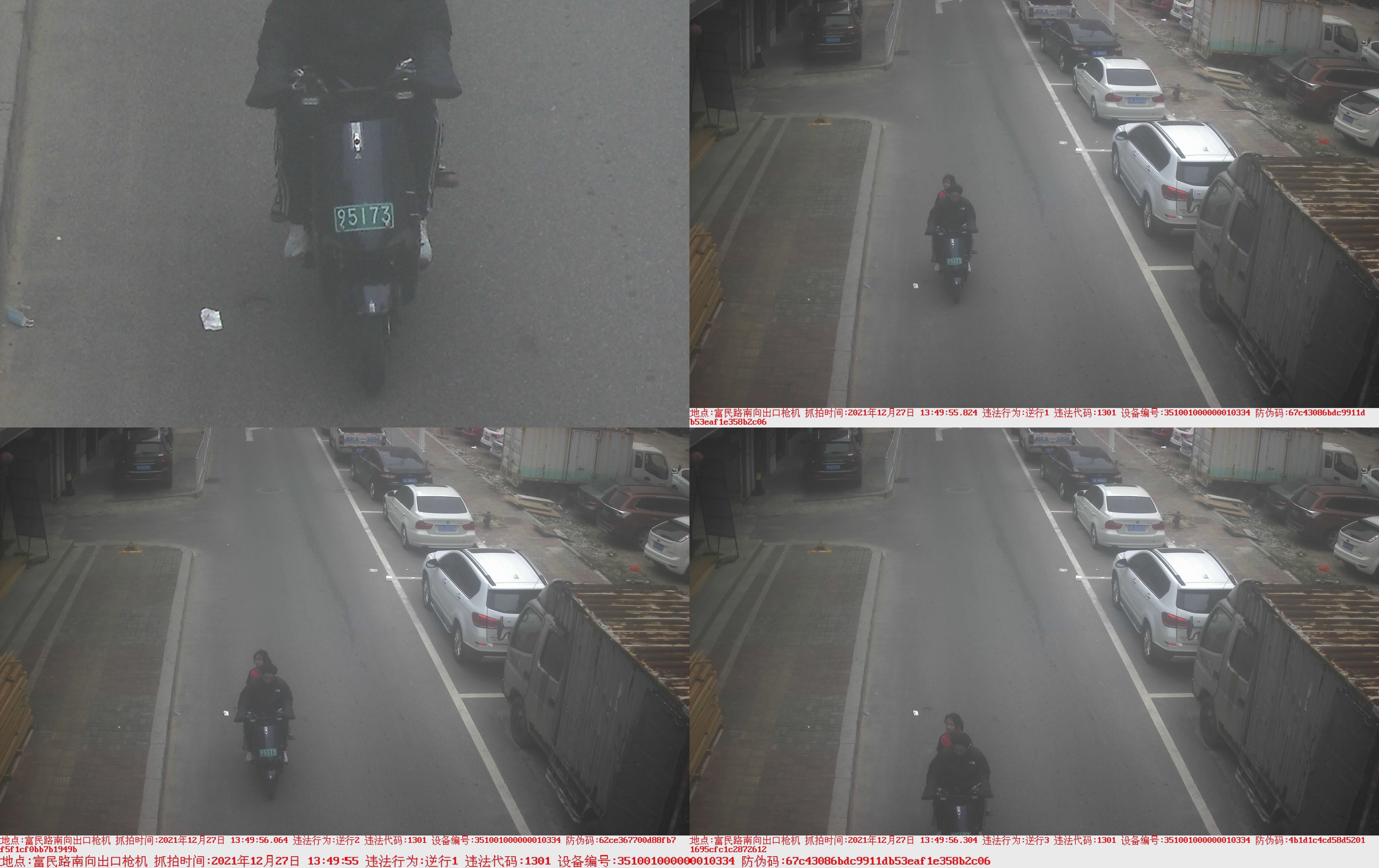 2021年12月27日13時49分56秒 富民路南向出口槍機 平潭95173 車輛違法逆行