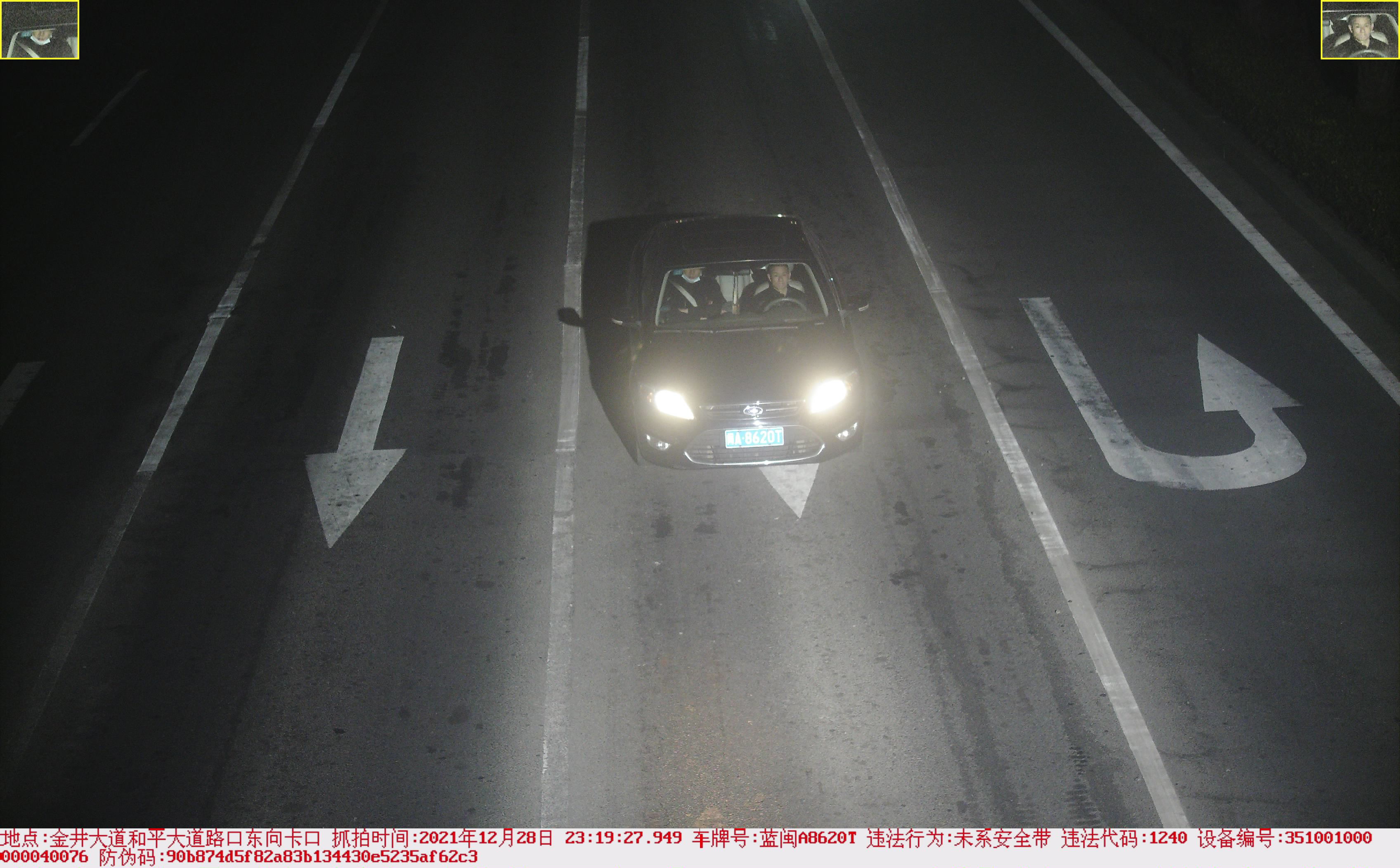 2021年12月28日23時19分27秒 金井大道和平大道路口東向卡口 閩A8620T 未系安全帶