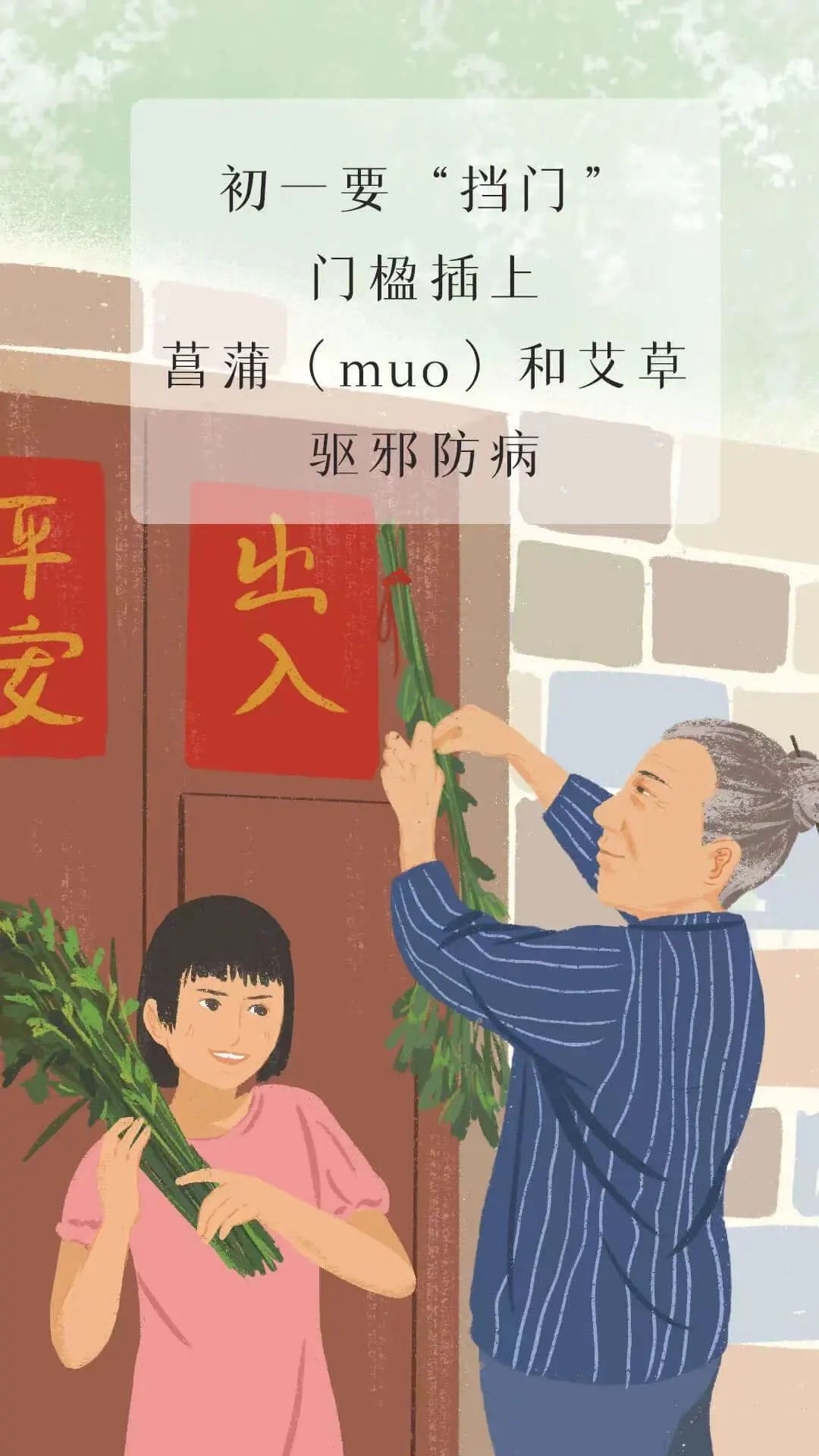 會(huì)將艾草、菖蒲掛在門的兩側(cè)