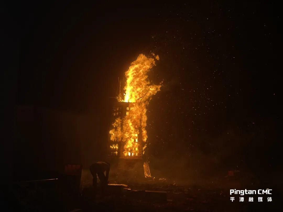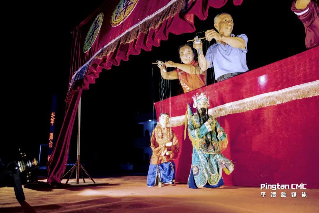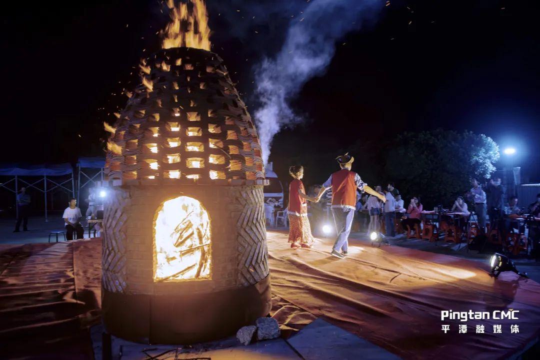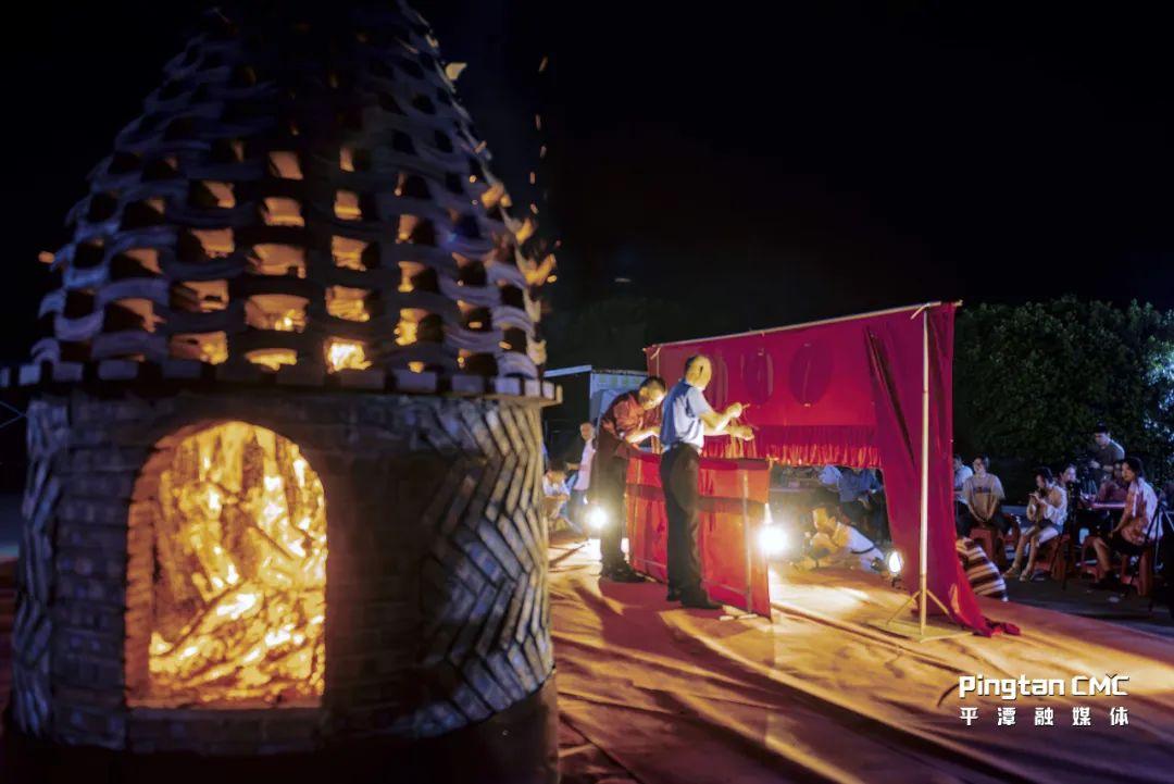 伴著“咿咿呀呀”的詞明戲的唱詞,提著木偶的詞明戲藝人在舞臺(tái)上表演:“蟠桃已熟,摘來獻(xiàn)神仙……”小小的帷幕前,詞明戲《偷桃》隨著一陣熱鬧的鑼鼓開場(chǎng),只見四名藝人手指輕盈擺動(dòng),一具具木偶躍入戲臺(tái),配以聲情并茂的演唱,靈動(dòng)的身影讓人目不暇接。另外一側(cè),火光紅艷的燒瓦塔處,人們把粗粒的海鹽大把大把地撒向塔里,瓦塔發(fā)出像鞭炮一樣的噼啪響聲,火光四濺,照耀如晝,十分壯觀,十里八鄉(xiāng)的鄉(xiāng)鄰都趕來欣賞。