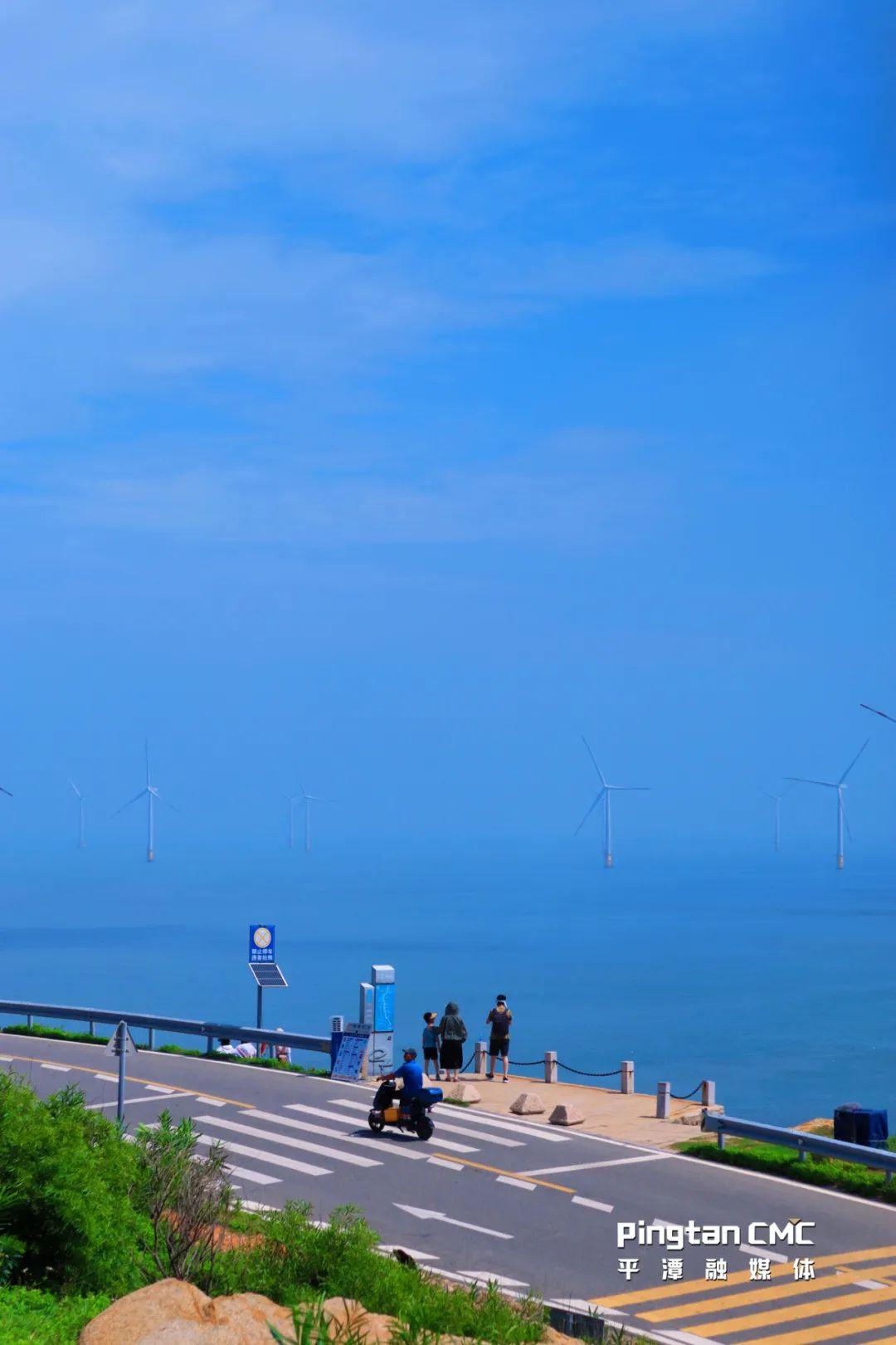 從青峰村出發,沿途一半是海水,一半是山景。風車斷崖碼頭、風車森林公路、漂流瓶沙灘、懸崖玻璃棧道、郵票相框、聽風臺等網紅打卡點和特色觀景臺,讓人應接不暇。