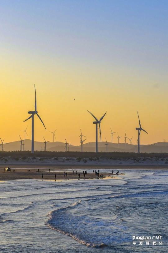 風(fēng)車在夕陽(yáng)的余暉中悠悠轉(zhuǎn)動(dòng)