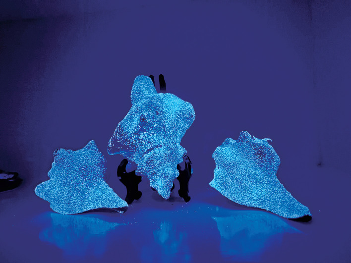 /“潮汐之瞳”:由海螺制成,藍(lán)眼淚的熒光似大海的眼睛,映照著潮汐的律動(dòng)。