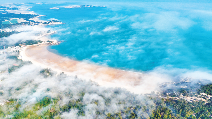 /夢幻般的平流霧、綿延的沙灘、湛藍的海水,構成了如詩如畫的仙境。