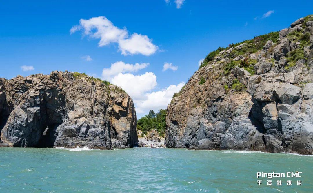 仙人谷則是天然的一條海蝕峽谷,長70余米,內(nèi)窄外寬,窄處僅30余米,谷口卻開闊如海。峽谷兩側絕壁挺拔垂直,谷中間密密麻麻鋪滿的鵝卵石是從崖壁掉落的碎石塊,經(jīng)千百年海水沖刷侵蝕形成。不巧的是我們來時不是漲潮時間,當我探頭俯瞰仙人井時沒能看到“仙井吼濤”的奇景,但分明從這刀削斧劈的井壁看到一雙自然之手,仍不停地揮動由風與水鍛打的時光之刀,雕刻著天地間所有的事物,包括我們的容顏。