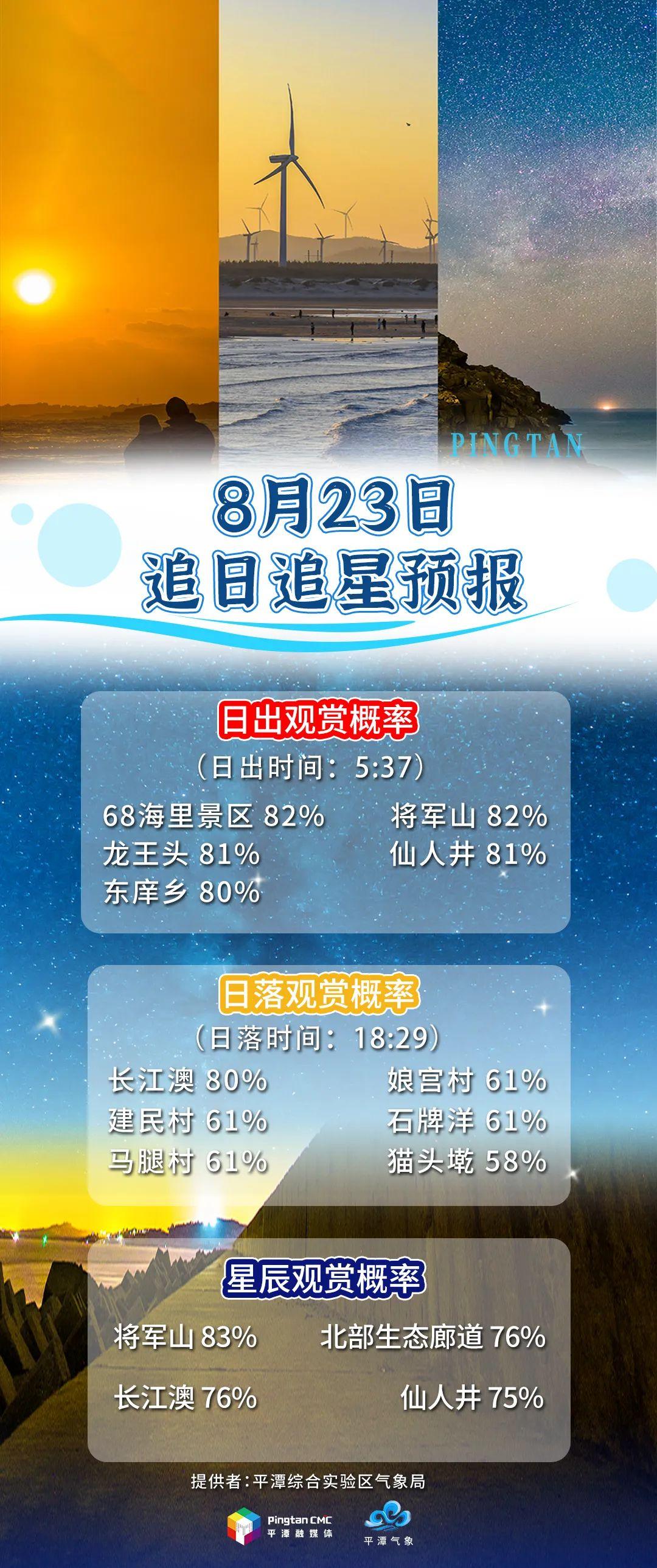 追日追星預報丨8月23日,“追星”概率將軍山83%,“追日”概率68海里景區82%
