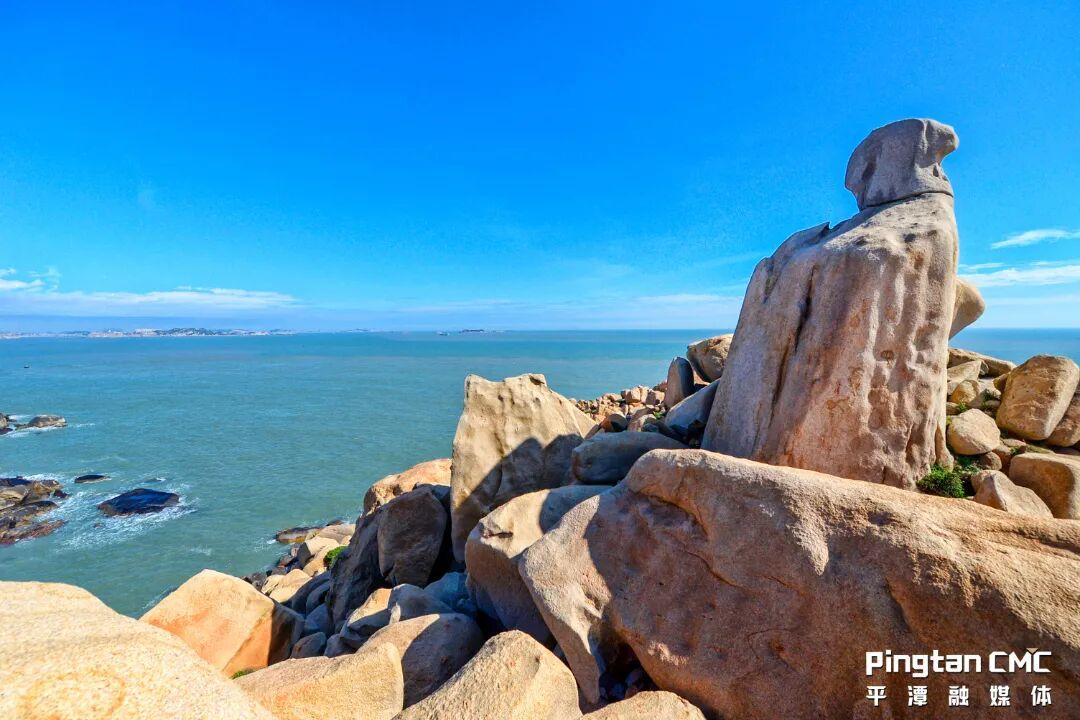 移步換景,若從西側仰望海山公,石像竟奇妙地一分為二,輪廓纏綿婉轉,宛如一對相偎的戀人,在濤聲中傾訴著亙古不變的情話。這奇絕景致,恰似平潭人大海般剛柔并濟的性情:既有大丈夫的勇敢與剛毅,又蘊含溫潤的包容與柔情。
