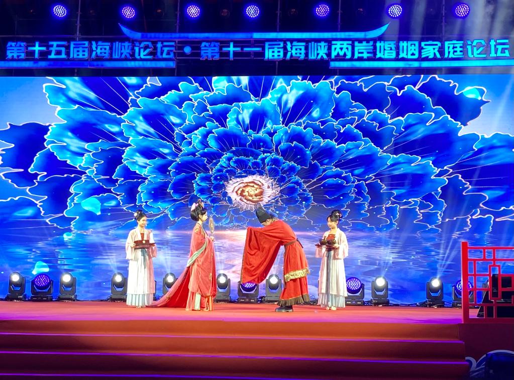 6月18日,表演者在第十一屆海峽兩岸婚姻家庭論壇文藝晚會上表演婚禮慶典。新華社記者 許雪毅 攝