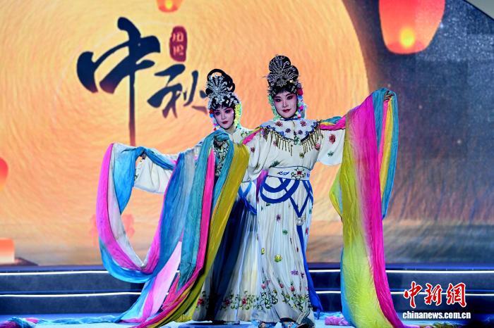 9月28日晚,第六屆海峽客家中秋晚會在福建省龍巖市龍津湖公園舉行。圖為情景表演《霓裳奔月》。中新社記者 張金川 攝