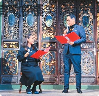 許振文(右)與妻子朗誦《當(dāng)你老了》。黃興鴻攝